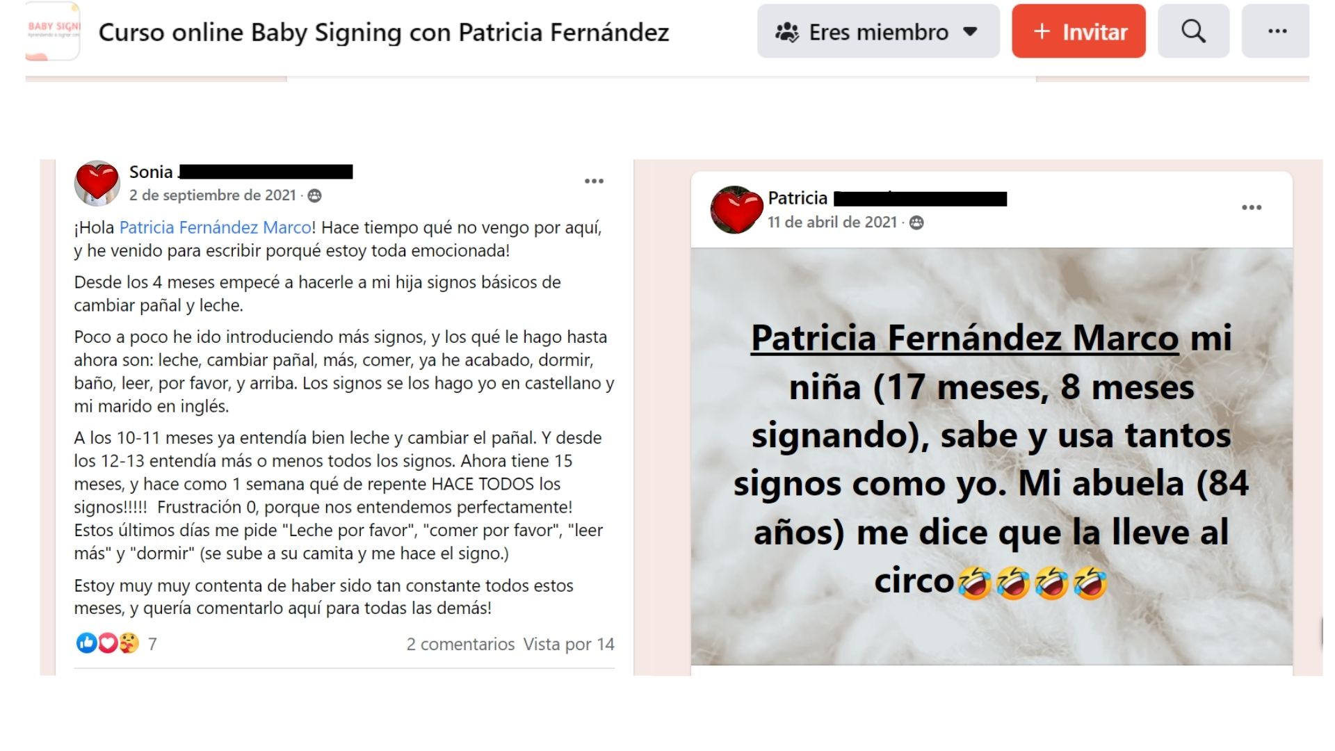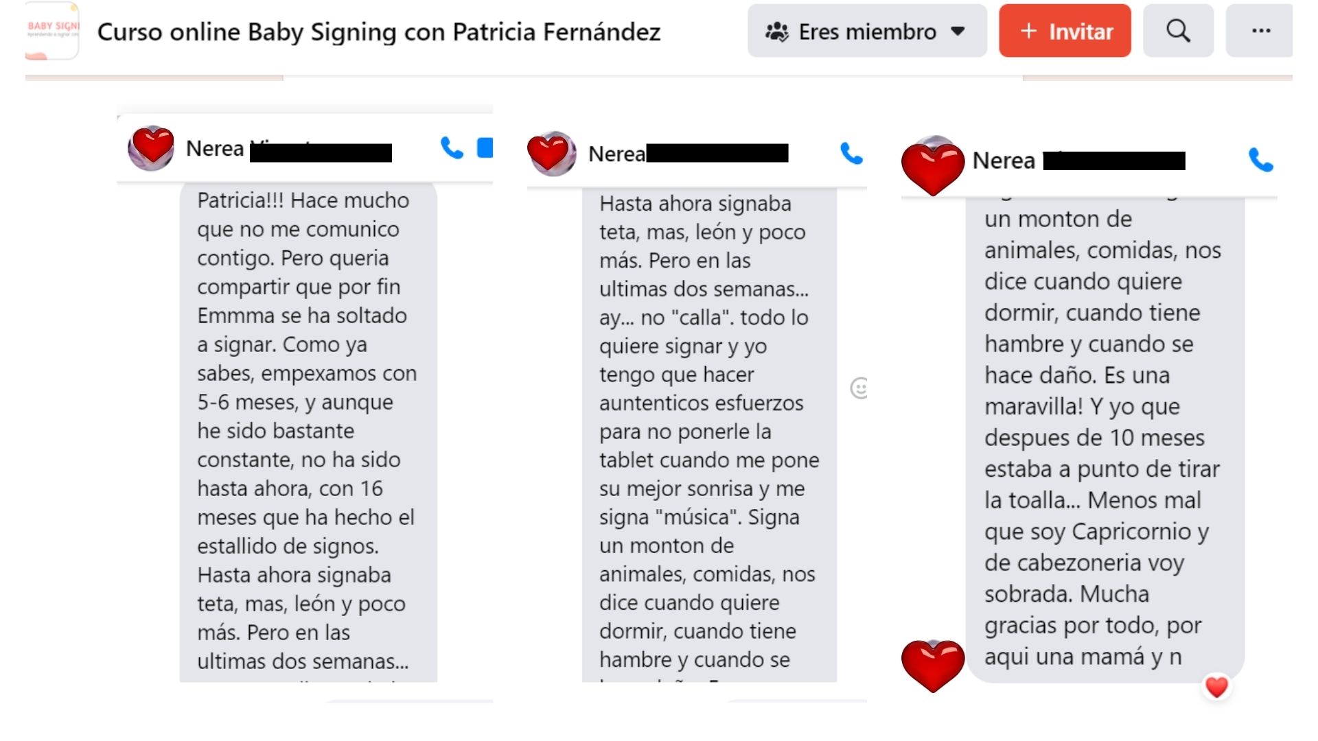 Acceso a un grupo de Facebook para compartir con otras familias y resolver dudas.
